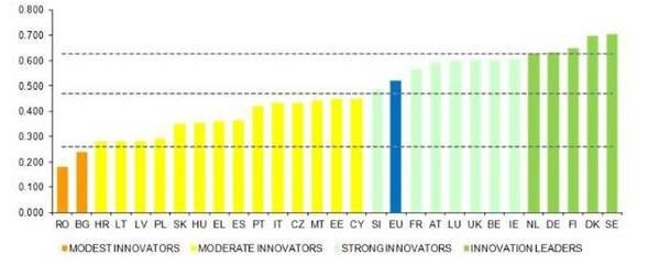 La Comisión destaca que en los países de moderada innovación -entre los que se encuentra nuestro país- existen núcleos regionales de innovación: el País Vasco en España, Piamonte y Friul-Venecia Julia en Italia, y Bratislava en Eslovaquia. En áreas de innovación determinadas, los líderes de la UE son: Suecia: recursos humanos y calidad de la investigación académica; Finlandia: condiciones marco financieras; Alemania: inversión privada en innovación; Bélgica: redes de innovación y colaboración; Irlanda: innovación en las pequeñas y medianas empresas. El organismo subraya que el principal factor para convertirse en un líder de innovación es la implantación de un sistema de innovación equilibrado que combine un nivel adecuado de inversiones públicas y privadas, asociaciones de innovación eficaces entre empresas y entidades docentes, así como una sólida base educativa e investigación de excelente calidad. El impacto económico de la innovación debe manifestarse en términos de ventas y exportaciones de productos innovadores y también de empleo.